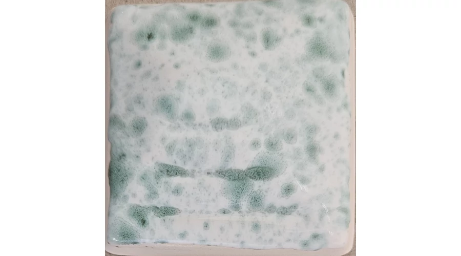 Fényes fehér máz zöld kristály hatással, granulátummal, effektes.