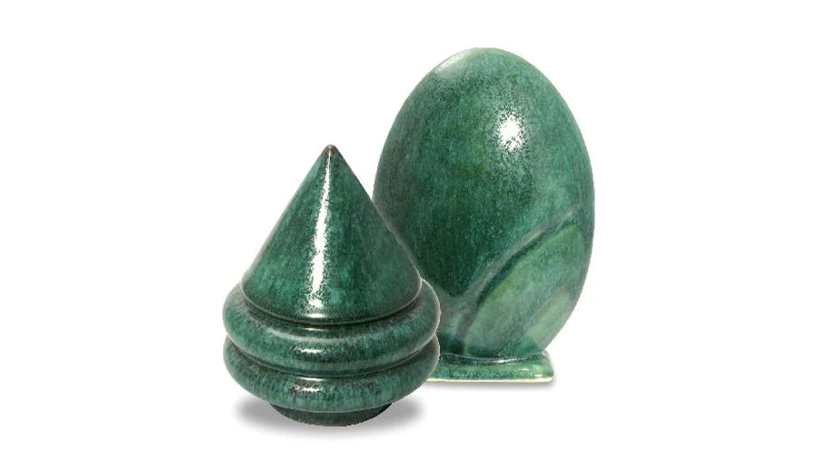 Szín: ZöldZöldeskék, fényes hatású máz, szürkés, kristályos lefolyássokkal.